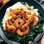 Spicy Shrimp with Cauliflower Mash and Garlic Kale