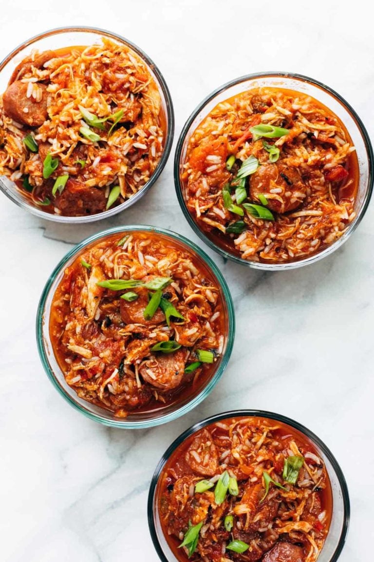 Shredded chicken, andouille sausage, creole seasoning, a rich tomato sauce, veggies, and rice. Made in the Instant Pot or slow cooker!