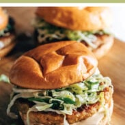 Burger Mixing: If the mixture is sticking to your hands while forming the burgers, try getting them a little bit wet with water. That usually helps me with the sticking. If your burger mixture seems too wet, adding an extra 1/4 cup panko will help them hold together even better.