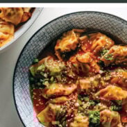 My girls can’t handle the spiciness in the chili oil, but I just steam a few of the chicken wontons for them to eat plain or dipped in teriyaki sauce, and they love it. Meanwhile, Bjork and I have our bowls tipped up to the sky getting every last lick of that spicy broth-sauce out of the bowl. No drops left behind!